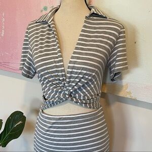 Favorite Daughter The Day To Night Maxi Dress Gray/White Striped Cut-Out Sz L.