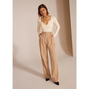 Favorite Daughter The Favorite Pant Pleated Wide Leg High Waist Beige Trouser 2