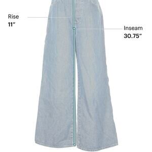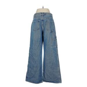 The "Favorite Daughter The Ollie Ultimate Baggy Wide Leg Cargo Jeans in Bedford 28" are a stylish and comfortable pair of denim jeans for women. With a button closure and mid-rise fit, these jeans feature a wide-leg silhouette and cargo pockets for added functionality. Made from cotton denim with a medium wash, these jeans in blue color are perfect for the winter, fall, and spring seasons. The relaxed fit and comfortable fabric make them a versatile and trendy choice for any city-inspired or 90s-themed wardrobe.