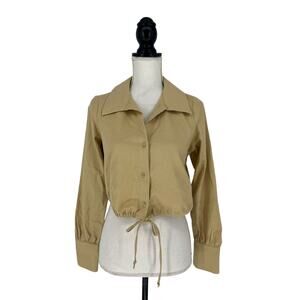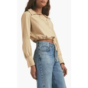 The Favorite Daughter Parker Top is a chic and versatile piece crafted in a lightweight linen blend. Designed in a cropped silhouette with a feminine drawstring waist, this polished button-front shirt features a spread collar, long sleeves with button cuffs, and a tailored-yet-relaxed fit. Perfect for warm-weather wear or layered under blazers, it effortlessly balances comfort and sophistication. Pair with denim, skirts, or tailored trousers for an easy, fashion-forward look.