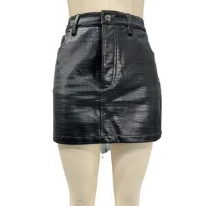 Favorite Daughter 'The Shay' Black Polyurethane Skirt Size 29: lightweight faux leather with stretch, croc-embossed finish, button fly, 5-pocket styling.