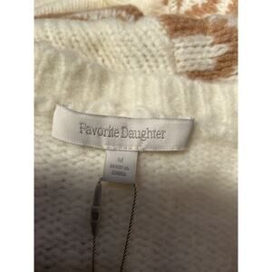Favorite Daughter 'The Winter' White William Merino Wool Blend Sweater Size M: it features long sleeves, a v-neck, and ribbed cuffs and hem.