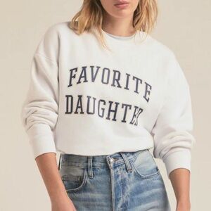 Stylish crew neck sweater. Features bold lettering. Comfortable and chic.