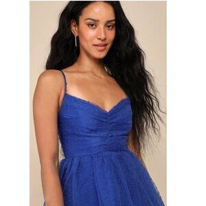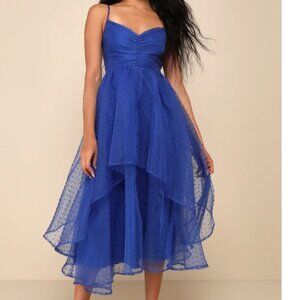 Favorite Event Cobalt Blue Swiss Dot Pleated Tiered Midi Dress