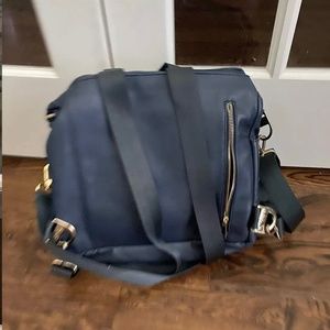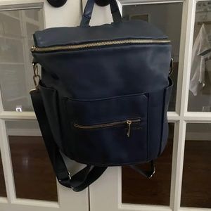 Navy color , vegan leather backpack style diaper back. No stains or wear/tear.