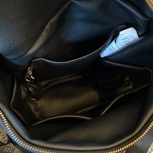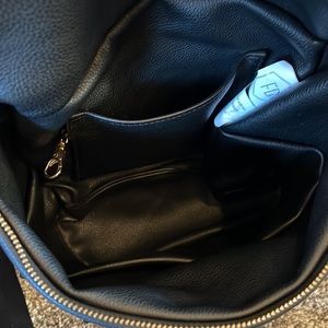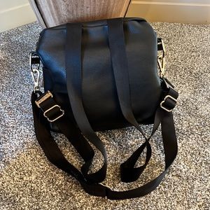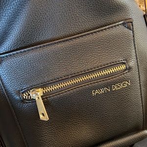 Fawn Design Mini Backpack. Pebbled black faux leather. This bag is like new. The messenger strap is interchangeable. You can carry this bag as a backpack or a messenger bag. Super cute!