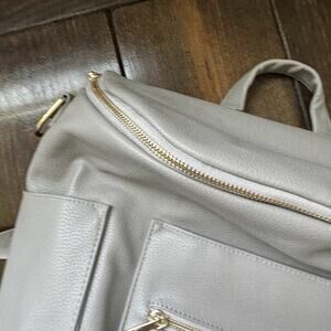 Fawn Design The Original Diaper Bag Vegan Leather Convertible NWOT Gray