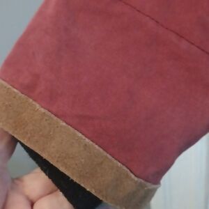 Great Vintage canvas Fireman's turnout coat, Fireman's jacket sturdy canvas with snap panel and heavy metal clasps, 2 patch pockets with snaps, suede cuffs, pink corduroy collar. Unfortunately this is missing the heavy wool liner for the colder days but still an awesome vintage find!!! dark pink mauve color Size S measures 21" pit to pit , 34" long. In great condition, the clasps are a bit tarnished and a bit of fraying on collar....see photos FA Fay