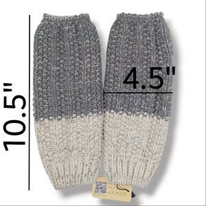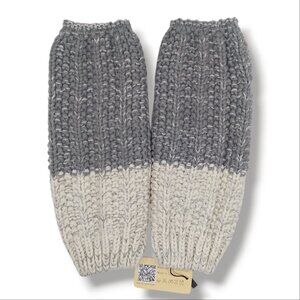 Faybox Fingerless Gloves Knit Gray Ivory OS Arm Hand Warmer Sleeve Fall NWT
