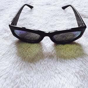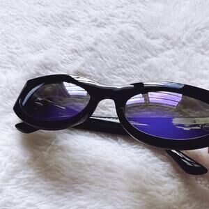 These glasses comes with a fabric pouch and eyeglasses cloth wipe. Some reflections may be pictured due to the mirrored lenses - they are not flaws to the product. The sunglasses provides UV400 protection.
