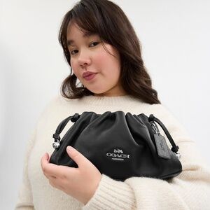 Smooth leather Inside zip pocket Drawstring and magnetic snap closures fabric lining Handle with 9 drop Detachable strap with 21 1/2 drop for shoulder or crossbody wear 10 1/4 (L) x 6 (H) x 2 3/4 (W) Style No. CV529