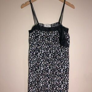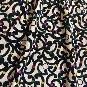 Black pattern on white dress with inlaid black and white dots and scattered colorful polka dots too! Absolutely gorgeous!