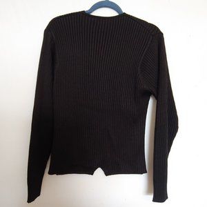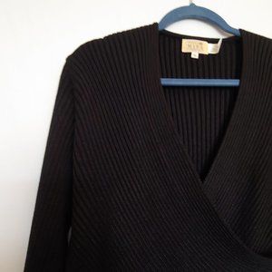 Fay's at Mira sophisticate black wrap thick rib knit long sleeve sweater size XL