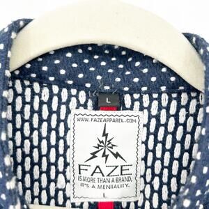 Faze Apparel Mens Polka Dot Wool Blend Button Up Shirt Jacket Shacket in Navy Blue and White. Size large.