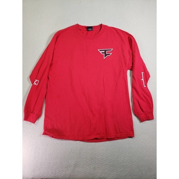 Faze Clan Shirt Mens Large L Red 100% Cotton Long Sleeve Crew Neck Pullover
