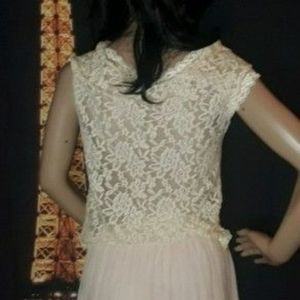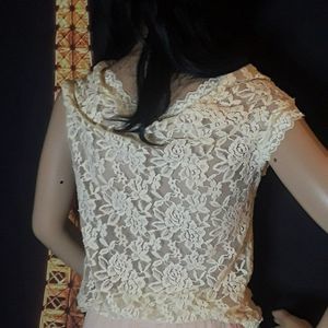 FCK ladies XL stretch off white cream colored lace top, cap sleeves,lightly double lines in the front so it is not completely see through
