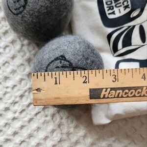 Features middle fingers for laundry day. This set of 3 eco-friendly wool balls will have you have you giggling each time you toss them in the dryer. Dryer balls are the perfect swap for dryer sheets. Better for the environment, easier for your machine, and no more chemicals for you! Comes with storage bag.