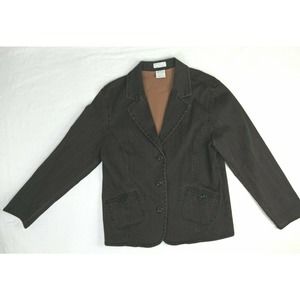 FdJ French Dressing Women's Large Brown Stretch Denim Jacket Button Up Pockets