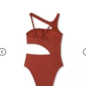 Fe NOEL Women's Asymmetrical Metallic Cut Out High Leg Cheeky One Piece new