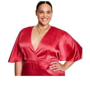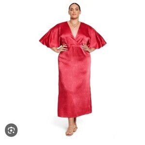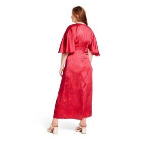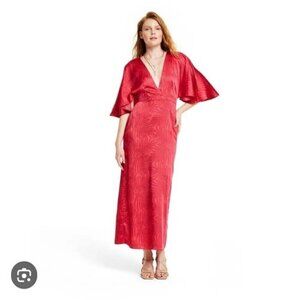 Fe Noel X Target Palm Leaf Contrast Flutter Sleeve Satin Maxi Dress NEW!