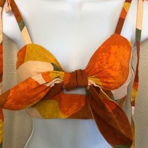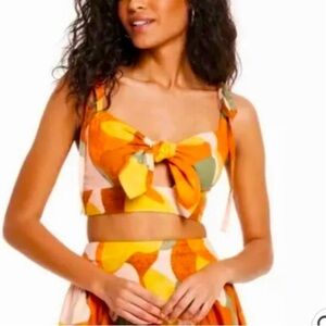 Fe Noel x Target Linen Blend Mixed Paint Print Knotted Crop Tank Top Size XS