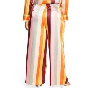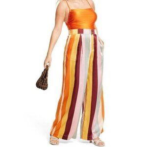 These Mixed Vertical Stripe Print Wide-Leg Pants from Fe Noel x Target make a fun and stylish addition to your wardrobe. Made from soft recycled polyester fabric, these high-rise, wide-leg pants feature vertical striped print in orange, brown and peach hues. They're designed with a fly button and zipper closure and a 32-inch inseam, and the full length makes them easy to wear with a wide variety of shoes.