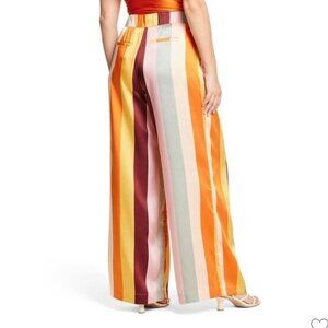 These Mixed Vertical Stripe Print Wide-Leg Pants from Fe Noel x Target make a fun and stylish addition to your wardrobe. Made from soft recycled polyester fabric, these high-rise, wide-leg pants feature vertical striped print in orange, brown and peach hues. They're designed with a fly button and zipper closure and a 32-inch inseam, and the full length makes them easy to wear with a wide variety of shoes.