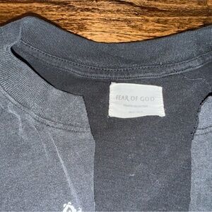 This listing is for the Fear Of God 4th Fourth Collection X Saint Vintage Sleeveless T-Shirt. This sleeveless tee is from a collaboration between the brand “Fear of Go and the Chicago based store “Saint Mxxxxxx or Saint Michael”. This tank top has a unique vintage wash and distressing, with cutoff sleeves. It has a slightly altered neck, in that it has been cut. This is a men’s Size Medium but fits closer to a size large.
