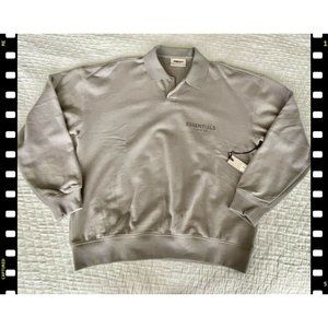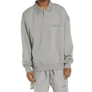 Fear Of God Essentials Logo Long Sleeve French Terry Polo Cement Gray Small