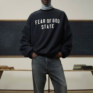 Fear of God ESSENTIALS Heavy Fleece Crewneck in Black oversized unisex sweater