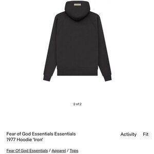 Nramd new. Fear of God Essentials 1977 hoodie. Size small, Color Iron. Goat verified
