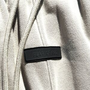 These Fear of God Essentials Baggy Sweatpants in size M are a pre-owned pair of activewear pants designed for men. Made by Essentials as part of their collaboration with Fear of God, these beige sweatpants are perfect for casual or athletic occasions. The baggy style provides a relaxed fit, while the regular size ensures a comfortable and stylish look for the modern man.
