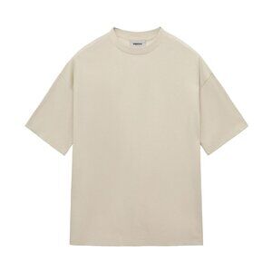 Cream short sleeve tee with bold black 'ESSENTIALS' print. Comfortable and stylish.
