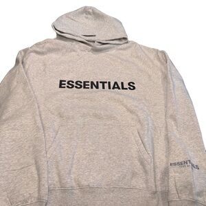 BRAND NEW with tags. Fear of God Essentials men’s light oatmeal hoodie. Front, sleeve and hood logo. Size large. See photos for measurements