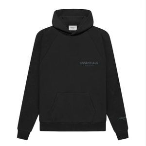 Fear of God Essentials Logo Print Pullover Jersey Hoodie Black Size XL