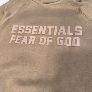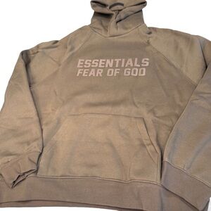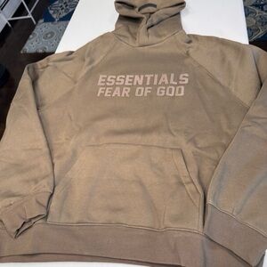 BRAND NEW with tags. Fear of God Essentials hoodie. Color wood size large. See photos for measurements
