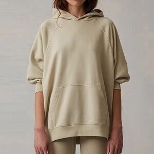 Fear of God Essentials Women’s Tan 3/4 Sleeve Felt 77 Pullover Hoodie Sweatshirt