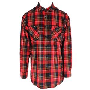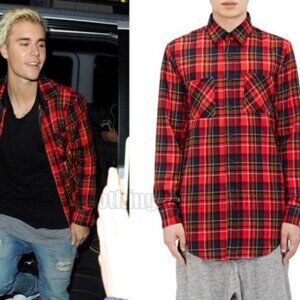 Rare piece, as seen on celebrities such as BTS' Taehyung and Justin Bieber. From the Third Collection. Red, black, and white flannel with a button front, chest pockets, and button cuffs. Features a unique back zipper detail.
