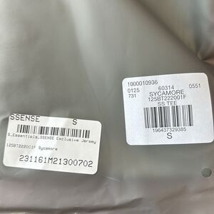 Tee is executed in an sycamore color. The brand refers to as From the Pre-Fall 2022 collection, it's cut for a boxy fit and printed with "Essentials" on the chest. A rubberized brand patch lands on the nape.