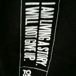 To Write Love on Her Arms graphic T-shirt. Design reads: "Fear vs. Dreams" under that it reads: "To Write Love on Her Arms". Graphic on the back of shirt is on the left hip and reads: "I am a living story. I will not give up." Under that it reads the TWLOHA logo.