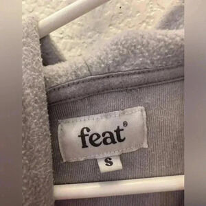 Stay warm and stylish with this Feat blue/grey sherpa fleece hoodie in size small. Featuring a soft, plush texture, this oversized pullover hoodie is perfect for chilly days. The design includes a kangaroo pocket, drawstring hood, and ribbed cuffs and hem for added comfort. With its relaxed fit and classic look, this hoodie is ideal for layering or wearing on its own. Enjoy the blend of casual comfort and cozy warmth that makes it a versatile addition to any wardrobe. Perfect for lounging or running errands in style!