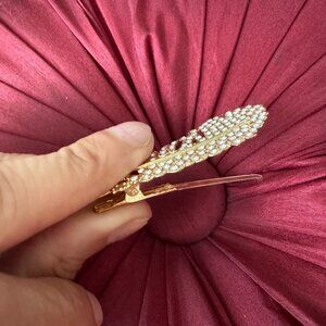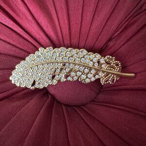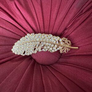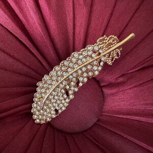 Feather Barrette Rhinestones Gold tone Clip Elegant Women's Accessory Neat Hair