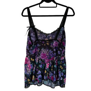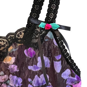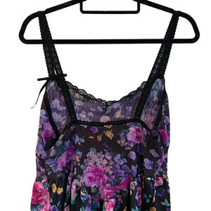 Womens size 1X, multicolor, flower pattern, black, pink, green, purple, yellow, sleepwear, lingerie, pullover, made in United States, polyester, nylon, machine washable
