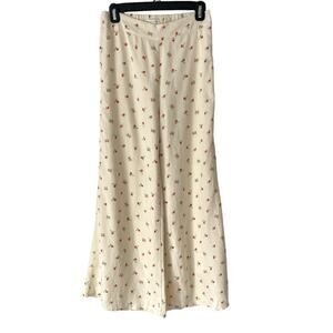 Feather Bone Anthropologie Cream Cherry Print Wide Leg Pants size 0