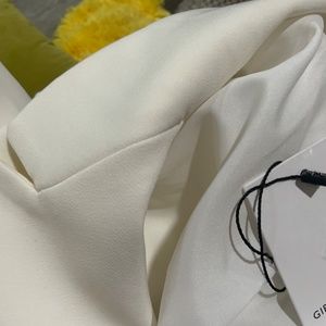 Stand Out from the Crowd: Be the center of attention and showcase your exceptional sense of style with this one-of-a-kind piece. Sophisticated Cream/white (please see photos) Feathers hang from cuffs. NWT. The Satiny lining slides well over your evening wear! 92% Poly, 8% spandex. 24” sleeve. The feathers will add additional length 4” long feathers! The feathers grace your hand beautifully. Body: 29.5” long, measuring from shoulder to length of jacket.