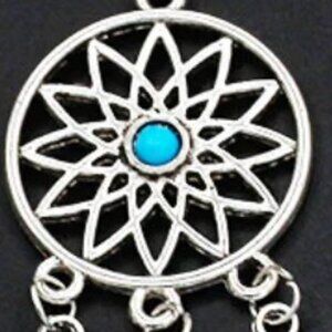 Feather Dream Catcher Silvertone Alloy Earrings with Turquoise Beads & Feathers