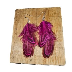 Handmade dyed pheasant feathers in bright / hot pink. Hypoallergenic stainless steel hook. Drop approximately 3.5". Each earring set has their own unique patterns, so no two are alike.