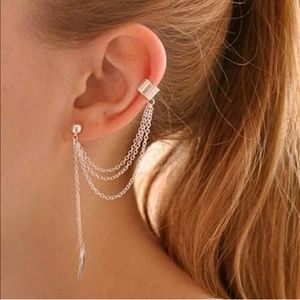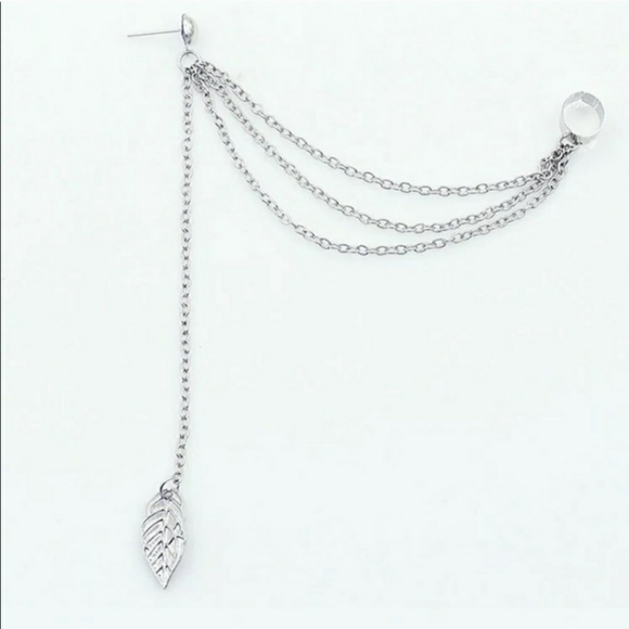 A beautiful earring with a feather charm and an ear cuff.