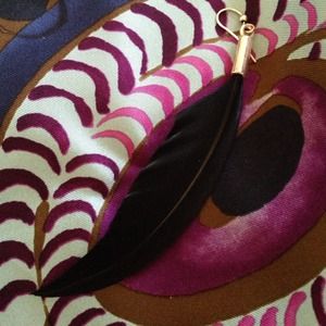 Black feather earring- Silver detail- Handmade in Paris- 4 1/2 in. long