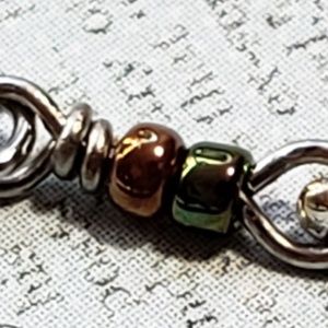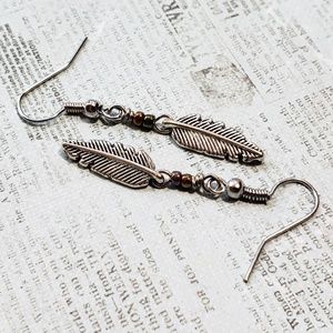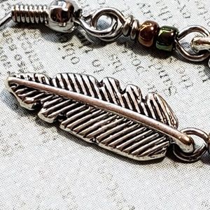 NEW! Beautiful handmade earrings featuring silver-plated Feather charms and iridescent bronze-tone glass beads. This listing is for one pair of earrings.
